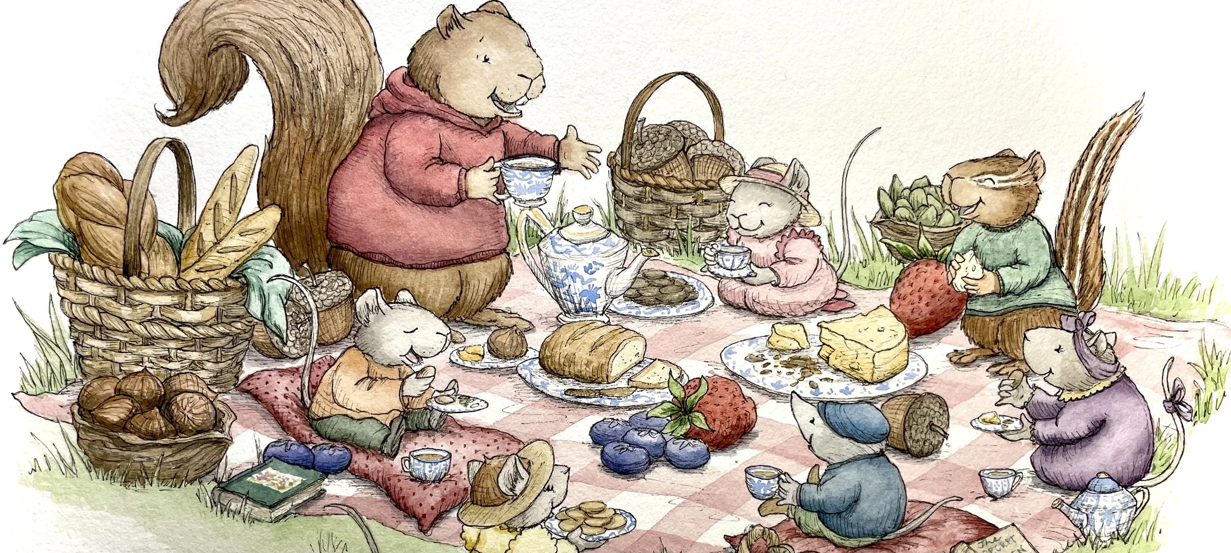 Our book, The Yellow Cottage: A Critter’s Tale, was created from a deep appreciation for these beloved classics. It celebrates wholesome storytelling that inspires imagination, creativity, kindness, and virtue. The tales follow the adventures of small woodland animals living around a country cottage. As they face changes to their home and encounter perils and uncertainties, they demonstrate bravery, strength, wisdom, and compassion — all while living in a community of wildlife.